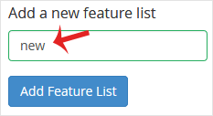 3. In Add a new feature list field, enter the name of your feature list then click on the Add Feature List button.
